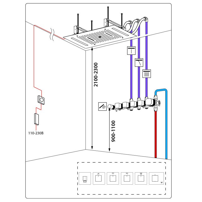 Черная сантехника становится все более популярной для ванных комнат из-за способности расставлять акценты.Встраиваемая душевая система с термостатом Timo Petruma 5229 относится к премиальному сегменту, предназначена для монтажа в полой или твердой стене. Термостатический картридж поддерживает стабильную температуру воды, обеспечивая максимально комфортные условия для принятия водных процедур. Встроенный потолочный душ большого размера создает имитацию проливного дождя, вода обливает человека целиком. Регулируя напор воды можно получить массажное воздействие, что очень полезно для здоровья. Основные преимущества встроенной системы: элегантный внешний вид, все коммуникации и крепления спрятаны в стену и потолок, снаружи видны только декоративные элементы. Установить встроенную систему можно в любом месте. Сложностей монтажа не возникает при установке элементов душевой системы опытным сантехником. Внимательно изучите инструкцию по монтажу и эксплуатации.Черная сантехника требует бережного ухода.