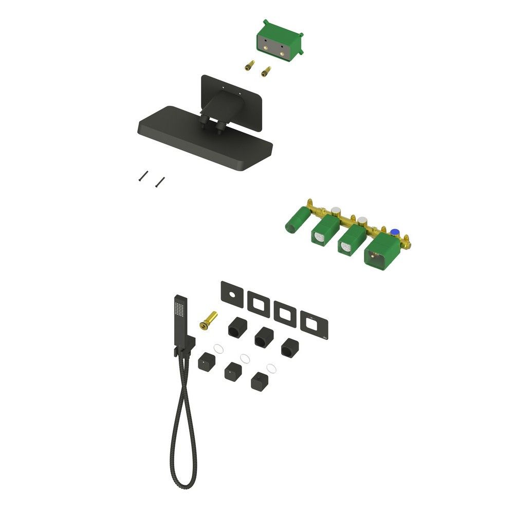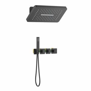 Черная сантехника становится все более популярной для ванных комнат из-за способности расставлять акценты.Душевая система с термостатом Timo Petruma 5249 относится к премиальному сегменту, предназначена для монтажа в полой или твердой стене. Термостатический картридж поддерживает стабильную температуру воды, обеспечивая максимально комфортные условия для принятия водных процедур. Настенный душ с двумя режимами позволяет принимать водные процедуры в зависимости от настроения. Регулируя напор воды можно получить массажное воздействие различной интенсивности. Используя режим "каскад"- получают седативное (успокаивающее) воздействие на затылочную часть головы или шейный отдел. Основные преимущества встроенной системы: элегантный внешний вид, все коммуникации и крепления спрятаны в стену, снаружи видны только декоративные элементы. Установить встроенную систему можно в любом месте. Использовать такой смеситель очень удобно, регулировка температуры воды осуществляется ручкой термостата (расположена справа). Переключение режимов "каскад", "тропический душ", "ручной душ" и увеличение напора осуществляется поворотом ручек диверторов расположенных слева от термостата. В положении ручек диверторов в положение 12:00 (смеситель выключен). Смеситель может работать в нескольких режимах одновременно"каскад"+"ручной душ", "тропический душ"+"ручной душ". Сложностей монтажа не возникает при установке элементов душевой системы опытным сантехником. Внимательно изучите инструкцию по монтажу и эксплуатации.Черная сантехника требует бережного ухода.