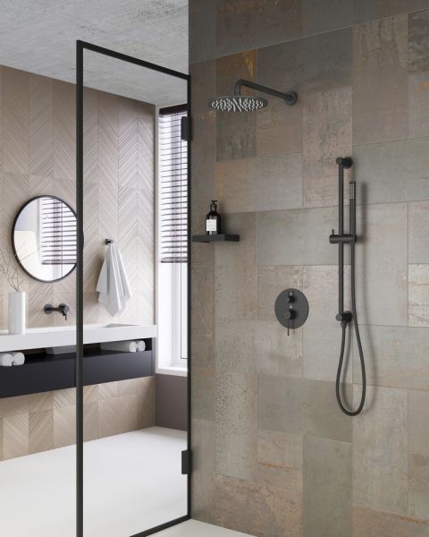 Черная сантехника становится все более популярной для ванных комнат из-за спообности расставлять акценты.Встраиваемая душевая система Saona 2309, предназначена для монтажа в полой или твердой стене. Основные преимущества встроенной системы: коммуникации, крепления и механизмы спрятаны в стену и видны только декоративные элементы. Установить встроенную систему можно в любом месте. Cтильная стойка из латуни позволяет установить ручную лейку-карандаш на необходимую высоту. Использовать такой смеситель очень удобно, регулировка температуры и напора воды осуществляется одним рычагом. Регулируя напор воды в режиме "тропический душ", можно получить массажное воздействие различной интенсивности. Переключение режимов подачи воды (тропический душ, ручная лейка) осуществляется поворотом керамического дивертора. Сложностей монтажа не возникает при установке элементов душевой системы опытным сантехником.Внимательно изучите инструкцию по монтажу и эксплуатации. Черная сантехника требует бережного ухода.