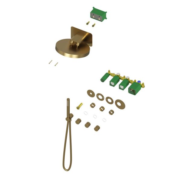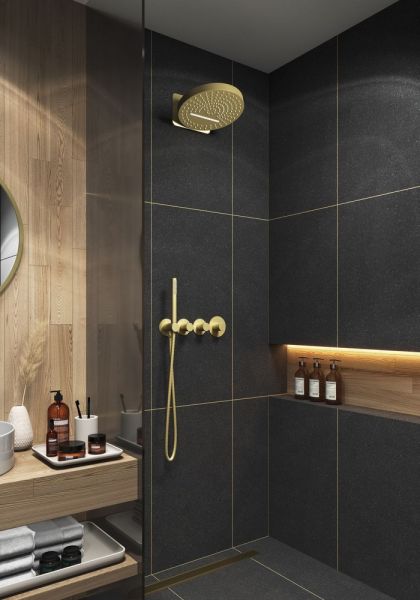 Цвет "матовое золото" никогда не выйдет из моды, во все времена драгоценный металл был признаком богатства.Душевая система с термостатом Timo Saona 2329 относится к премиальному сегменту, предназначена для монтажа в полой или твердой стене. Термостатический картридж поддерживает стабильную температуру воды, обеспечивая максимально комфортные условия для принятия водных процедур. Настенный душ с двумя режимами позволяет принимать водные процедуры в зависимости от настроения. Регулируя напор воды можно получить массажное воздействие различной интенсивности. Используя режим "каскад"- получают седативное (успокаивающее) воздействие на затылочную часть головы или шейный отдел. Основные преимущества встроенной системы: элегантный внешний вид, все коммуникации и крепления спрятаны в стену, снаружи видны только декоративные элементы. Установить встроенную систему можно в любом месте. Использовать такой смеситель очень удобно, регулировка температуры воды осуществляется ручкой термостата (расположена справа). Переключение режимов "каскад", "тропический душ", "ручной душ" и увеличение напора осуществляется поворотом ручек диверторов расположенных слева от термостата. В положении ручек диверторов в положение 12:00 (смеситель выключен). Смеситель может работать в нескольких режимах одновременно"каскад"+"ручной душ", "тропический душ"+"ручной душ". Сложностей монтажа не возникает при установке элементов душевой системы опытным сантехником. Внимательно изучите инструкцию по монтажу и эксплуатации.