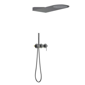 "Черное золото"- неизменно эффектный и привлекающий внимание цвет. Приглушенный мягкий оттенок черного, подчеркнет форму раковины или цвет мебели.Встраиваемая душевая система Saona 2340, предназначена для монтажа в полой или твердой стене. Основные преимущества встроенной системы: коммуникации, крепления и механизмы спрятаны в стену и видны только декоративные элементы. Установить встроенную систему можно в любом месте. Использовать такой смеситель очень удобно, регулировка температуры и напора воды осуществляется одним рычагом. Настенный душ с двумя режимами позволяет принимать водные процедуры в зависимости от настроения. Регулируя напор воды можно получить массажное воздействие различной интенсивности. Используя режим "каскад"- получают седативное (успокаивающее) воздействие на затылочную часть головы или шейный отдел. Переключение режимов подачи воды ("тропический душ", "каскад" или ручная лейка) осуществляется поворотом ручки дивертора. Сложностей монтажа не возникает при установке элементов душевой системы опытным сантехником. Внимательно изучите инструкцию по монтажу. Цвет "черное золото" не капризен в уходе, на нем менее заметны загрязнения и мелкие царапины.