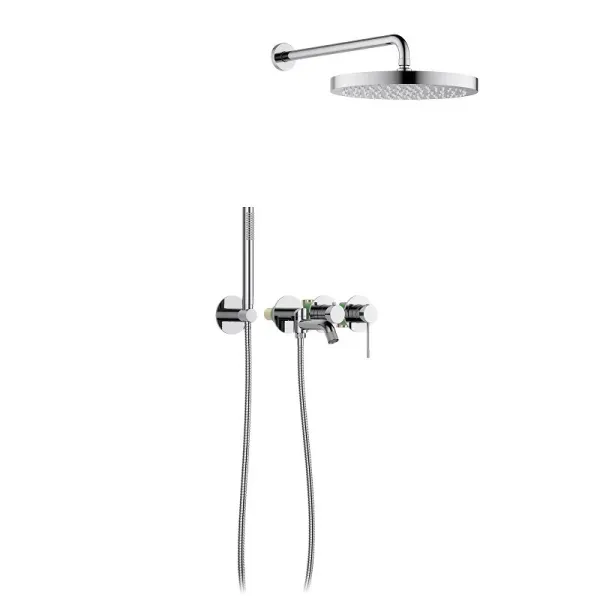• Переключение режимов подачи воды (тропический душ, излив) осуществляется поворотом керамического дивертора. Для подачи воды в режим "ручной душ" - поверните излив к стене. Сложностей монтажа не возникает при установке элементов душевой системы опытным сантехником.