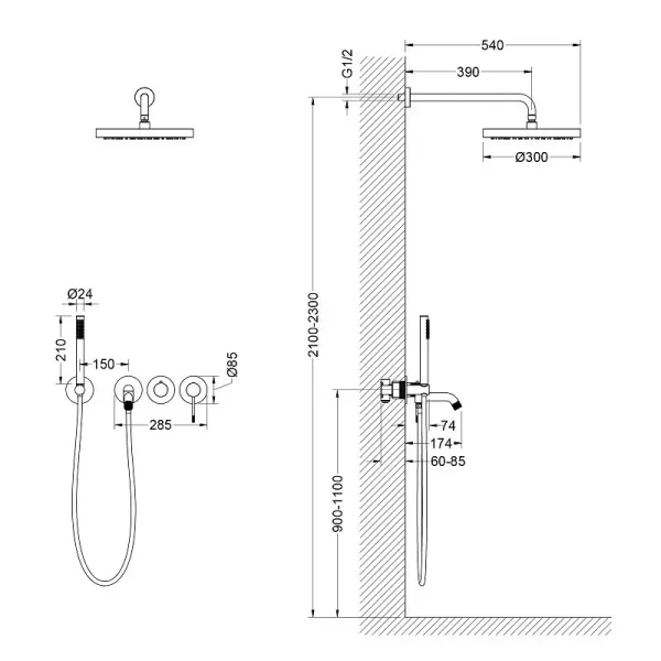 • Размер верхнего душа: Ø 300 мм