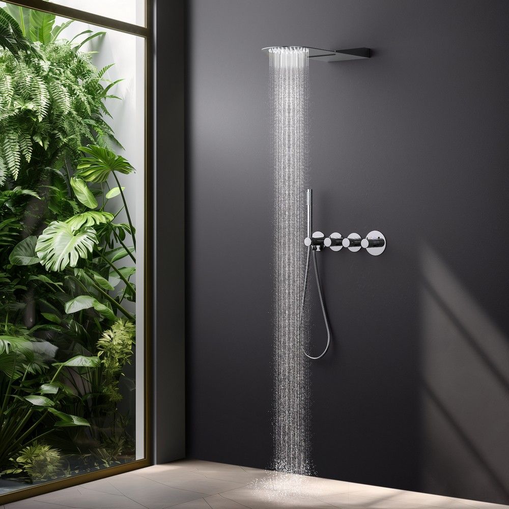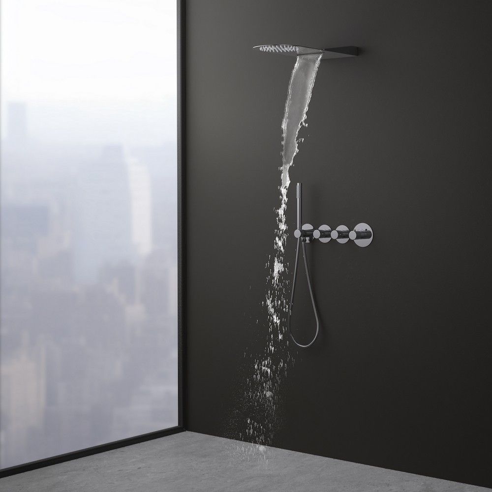 Душевая система с термостатом Timo Saona 2350 относится к премиальному сегменту, предназначена для монтажа в полой или твердой стене. Термостатический картридж поддерживает стабильную температуру воды, обеспечивая максимально комфортные условия для принятия водных процедур. Настенный душ с двумя режимами позволяет принимать водные процедуры в зависимости от настроения. Регулируя напор воды можно получить массажное воздействие различной интенсивности. Используя режим "каскад"- получают седативное (успокаивающее) воздействие на затылочную часть головы или шейный отдел. Основные преимущества встроенной системы: элегантный внешний вид, все коммуникации и крепления спрятаны в стену, снаружи видны только декоративные элементы. Установить встроенную систему можно в любом месте. Использовать такой смеситель очень удобно, регулировка температуры воды осуществляется ручкой термостата (расположена справа). Переключение режимов "каскад", "тропический душ", "ручной душ" и увеличение напора осуществляется поворотом ручек диверторов расположенных слева от термостата. В положении ручек диверторов в положение 12:00 (смеситель выключен). Смеситель может работать в нескольких режимах одновременно"каскад"+"ручной душ", "тропический душ"+"ручной душ". Сложностей монтажа не возникает при установке элементов душевой системы опытным сантехником. Внимательно изучите инструкцию по монтажу и эксплуатации.