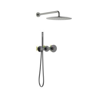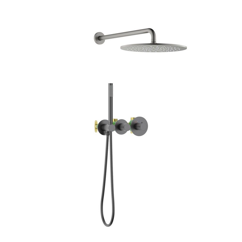 "Черное золото"- неизменно эффектный и привлекающий внимание цвет. Приглушенный мягкий оттенок черного, подчеркнет форму раковины или цвет мебели.Встраиваемая душевая система с термостатом Timo Saona 2359 относится к премиальному сегменту, предназначена для монтажа в полой или твердой стене. Термостатический картридж поддерживает стабильную температуру воды, обеспечивая максимально комфортные условия для принятия водных процедур. Верхний душ создает имитацию проливного дождя, вода обливает человека целиком. Регулируя напор воды можно получить массажное воздействие, что очень полезно для здоровья. Основные преимущества встроенной системы: элегантный внешний вид, все коммуникации и крепления спрятаны в стену и потолок, снаружи видны только декоративные элементы. Установить встроенную систему можно в любом месте. Сложностей монтажа не возникает при установке элементов душевой системы опытным сантехником. Внимательно изучите инструкцию по монтажу и эксплуатации. Цвет "черное золото" не капризен в уходе, на нем менее заметны загрязнения и мелкие царапины.