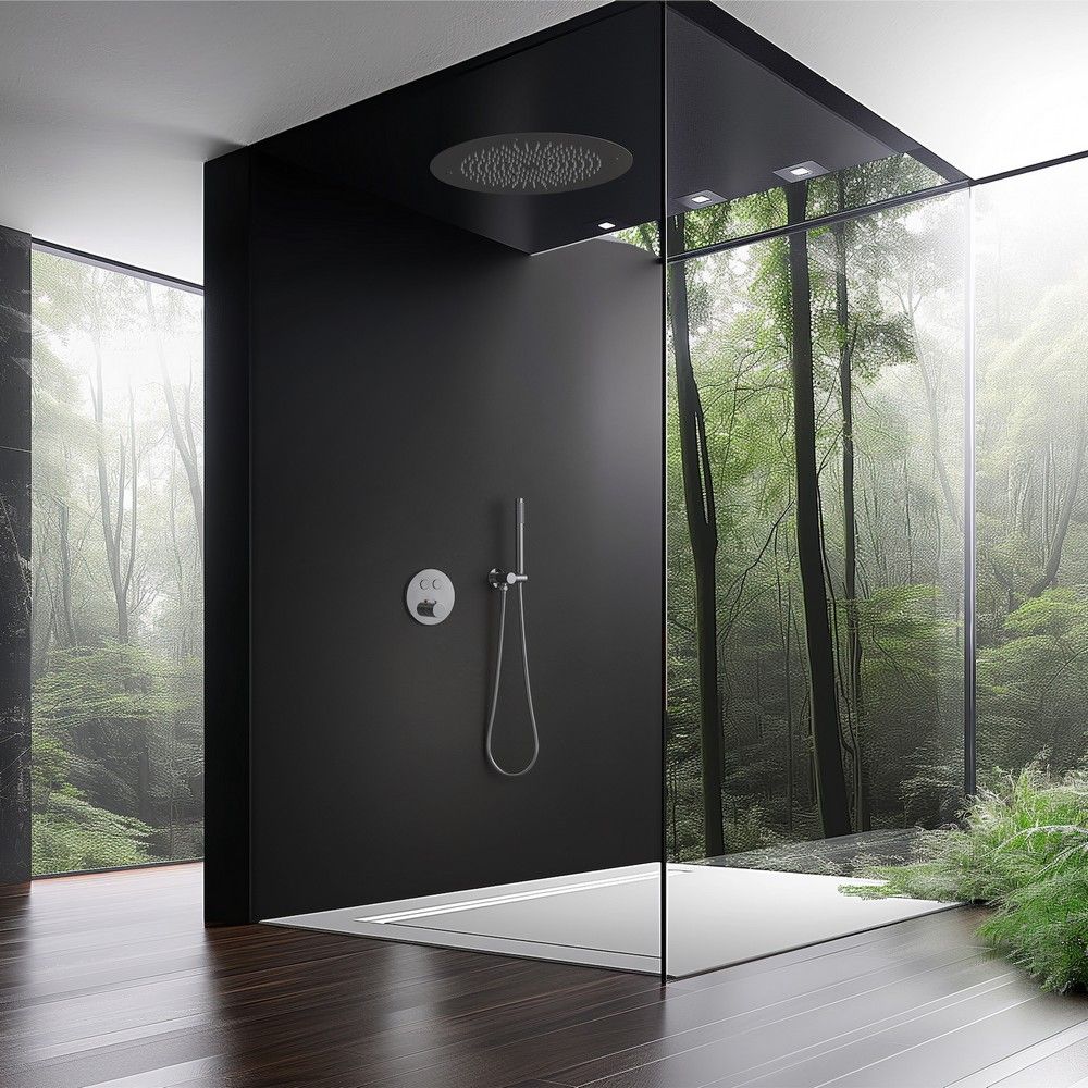 Встраиваемая душевая система с термостатом Timo Saona 2370 относится к премиальному сегменту, предназначена для монтажа в полой или твердой стене. Термостатический картридж поддерживает стабильную температуру воды, обеспечивая максимально комфортные условия для принятия водных процедур. Встроенный потолочный душ большого размера создает имитацию проливного дождя, вода обливает человека целиком. Основные преимущества встроенной системы: элегантный внешний вид, все коммуникации и крепления спрятаны в стену и потолок, снаружи видны только декоративные элементы. Установить встроенную систему можно в любом месте. Использовать такой смеситель очень удобно, регулировка температуры воды осуществляется ручкой термостата (расположена снизу). Режим "тропический душ" осуществляется поворотом ручки дивертора (расположена сверху) влево. Для переключения в режим "ручной душ" верните ручку дивертора в исходное положение 12:00 (смеситель выключен), а затем поверните вправо. Увеличение напора воды осуществляется поворотом ручки вправо. Сложностей монтажа не возникает при установке элементов душевой системы опытным сантехником. Внимательно изучите инструкцию по монтажу и эксплуатации.