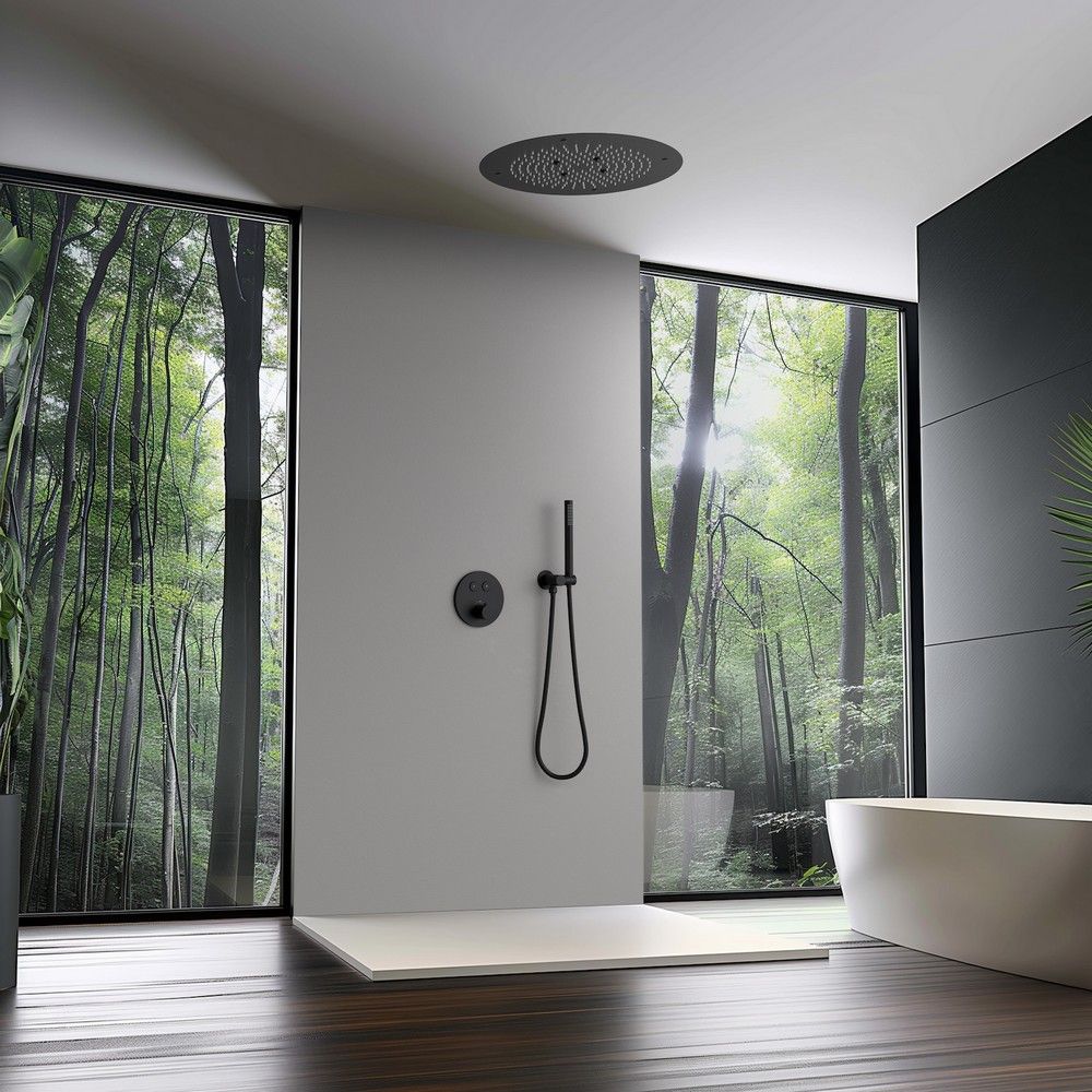 Черная сантехника становится все болеее популярной для ванных комнат из-за способности расставлять акценты.Встраиваемая душевая система с термостатом Timo Saona 2370 относится к премиальному сегменту, предназначена для монтажа в полой или твердой стене. Термостатический картридж поддерживает стабильную температуру воды, обеспечивая максимально комфортные условия для принятия водных процедур. Встроенный потолочный душ большого размера создает имитацию проливного дождя, вода обливает человека целиком. Основные преимущества встроенной системы: элегантный внешний вид, все коммуникации и крепления спрятаны в стену и потолок, снаружи видны только декоративные элементы. Установить встроенную систему можно в любом месте. Использовать такой смеситель очень удобно, регулировка температуры воды осуществляется ручкой термостата (расположена снизу). Режим "тропический душ" и увеличение напора осуществляется поворотом ручки дивертора (расположена сверху) влево. Для переключения в режим "ручной душ" верните ручку дивертора в исходное положение 12:00 (смеситель выключен), а затем поверните вправо. Увеличение напора воды осуществляется поворотом ручки вправо. Сложностей монтажа не возникает при установке элементов душевой системы опытным сантехником. Внимательно изучите инструкцию по монтажу и эксплуатации. Черная сантехника требует бережного ухода.
