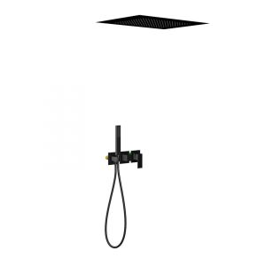 Черная сантехника становится все более популярной для ванных комнат из-за способности расставлять акценты.Встраиваемая душевая система Selene 2129, относится к премиальному сегменту, предназначена для монтажа в полой или твердой стене. Встроенный потолочный душ большого размера создает имитацию проливного дождя, вода обливает человека целиком. Регулируя напор воды можно получить массажное воздействие, что очень полезно для здоровья. Основные преимущества встроенной системы: элегантный внешний вид, все коммуникации и крепления спрятаны в стену и потолок, снаружи видны только декоративные элементы. Установить встроенную систему можно в любом месте. Использовать такой смеситель очень удобно, регулировка напора и температуры воды осуществляется одним рычагом. Переключение режимов "тропический душ" и "ручной душ" осуществляется поворотом ручки дивертора. Сложностей монтажа не возникает при установке элементов душевой системы опытным сантехником. Внимательно изучите инструкцию по монтажу и эксплуатации. Черная сантехника требует бережного ухода.