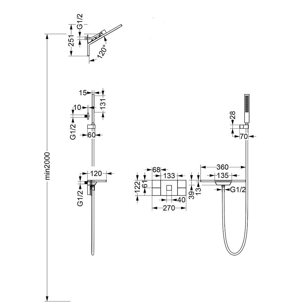 Верхний душ приобретается отдельно.