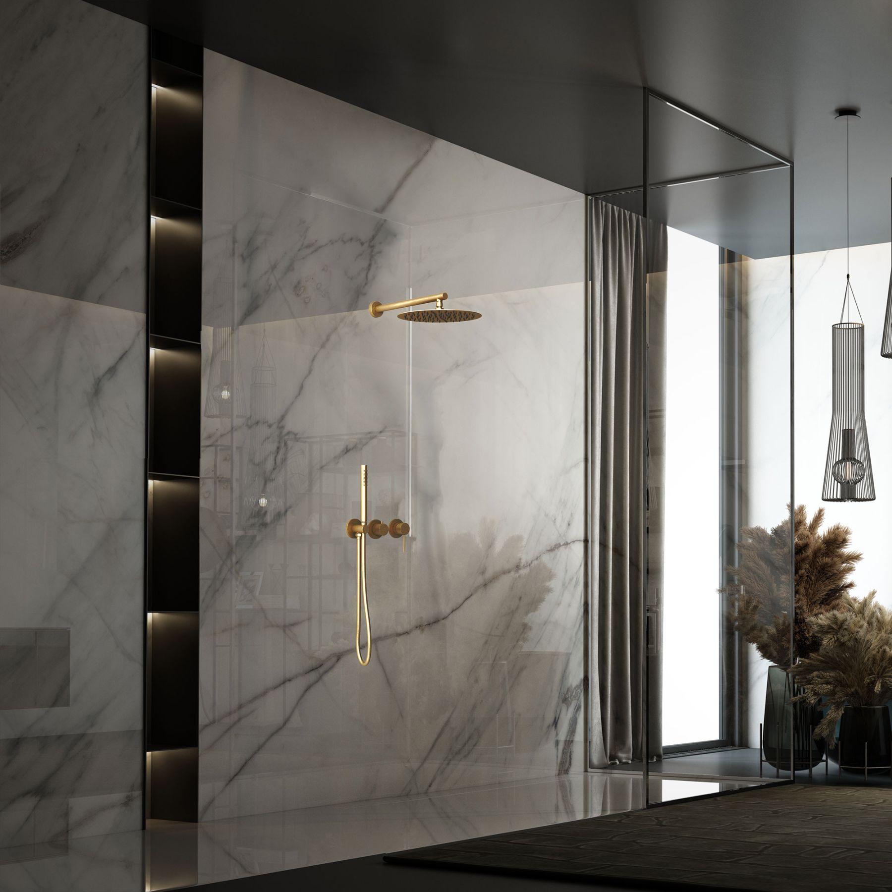 Душевой комплект Vincea Groove VSFW-4G01BG4 встраиваемый, двухрежимный, брашированное золото купить