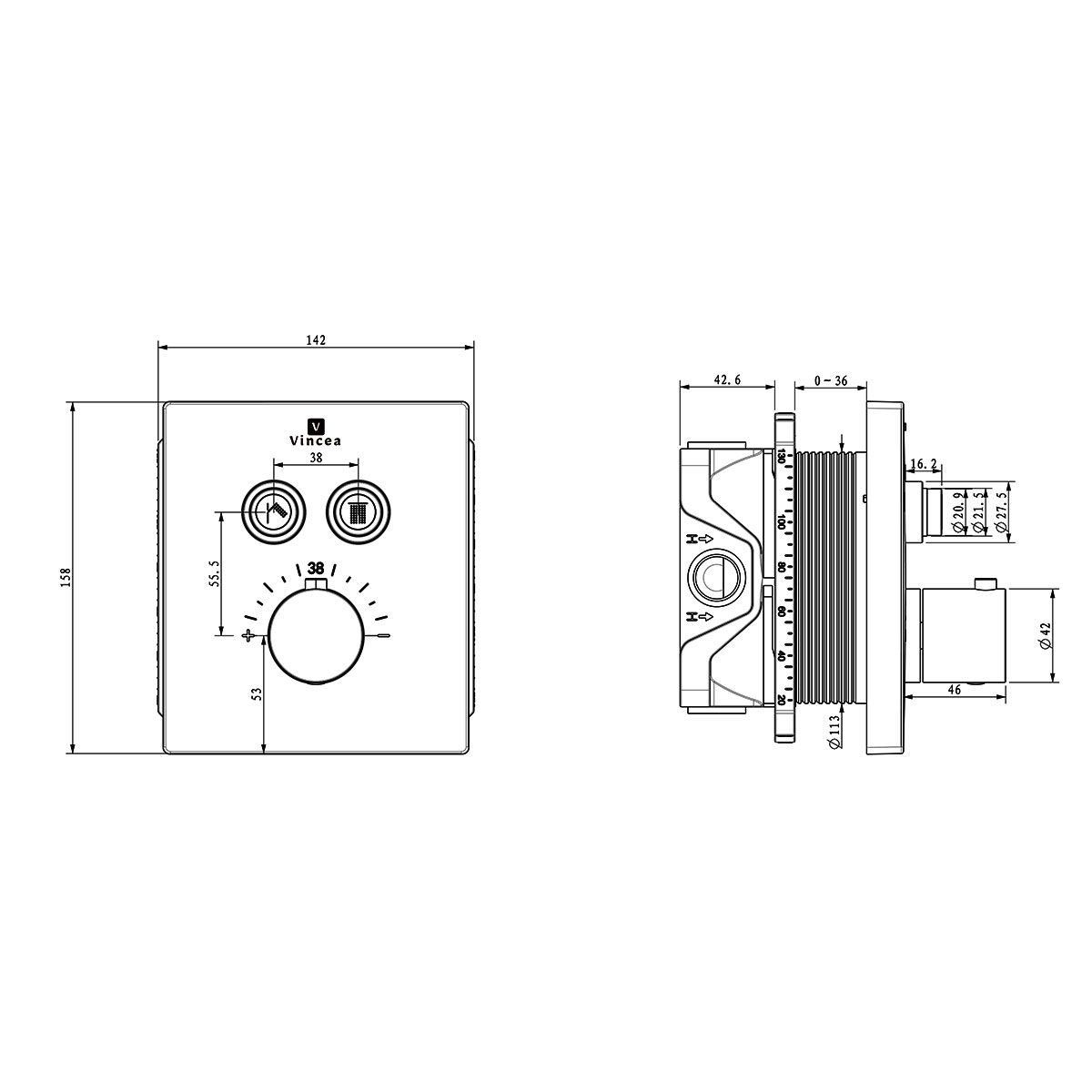 Душевой комплект Vincea Inspire VSFW-3I21T1MB встраиваемый, термостатический, двухрежимный, черный