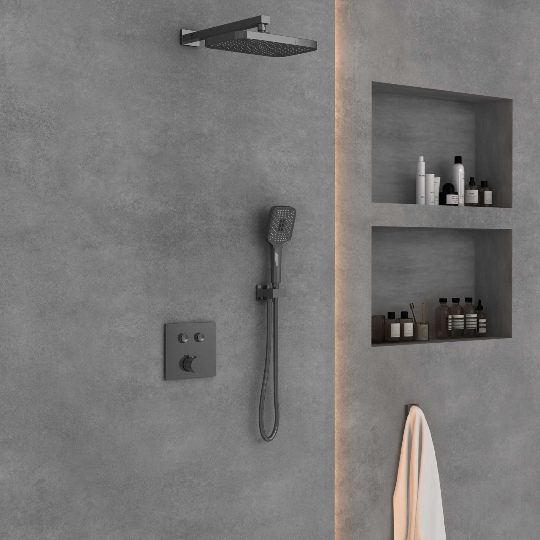 Душевой комплект Vincea VSFW-4211GM встраиваемый, двухрежимный, вороненая сталь