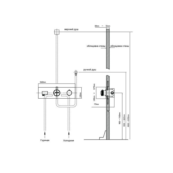 Душевой комплект Vincea VSFW-422TI1MB встраиваемый, термостатический, двухрежимный, черный