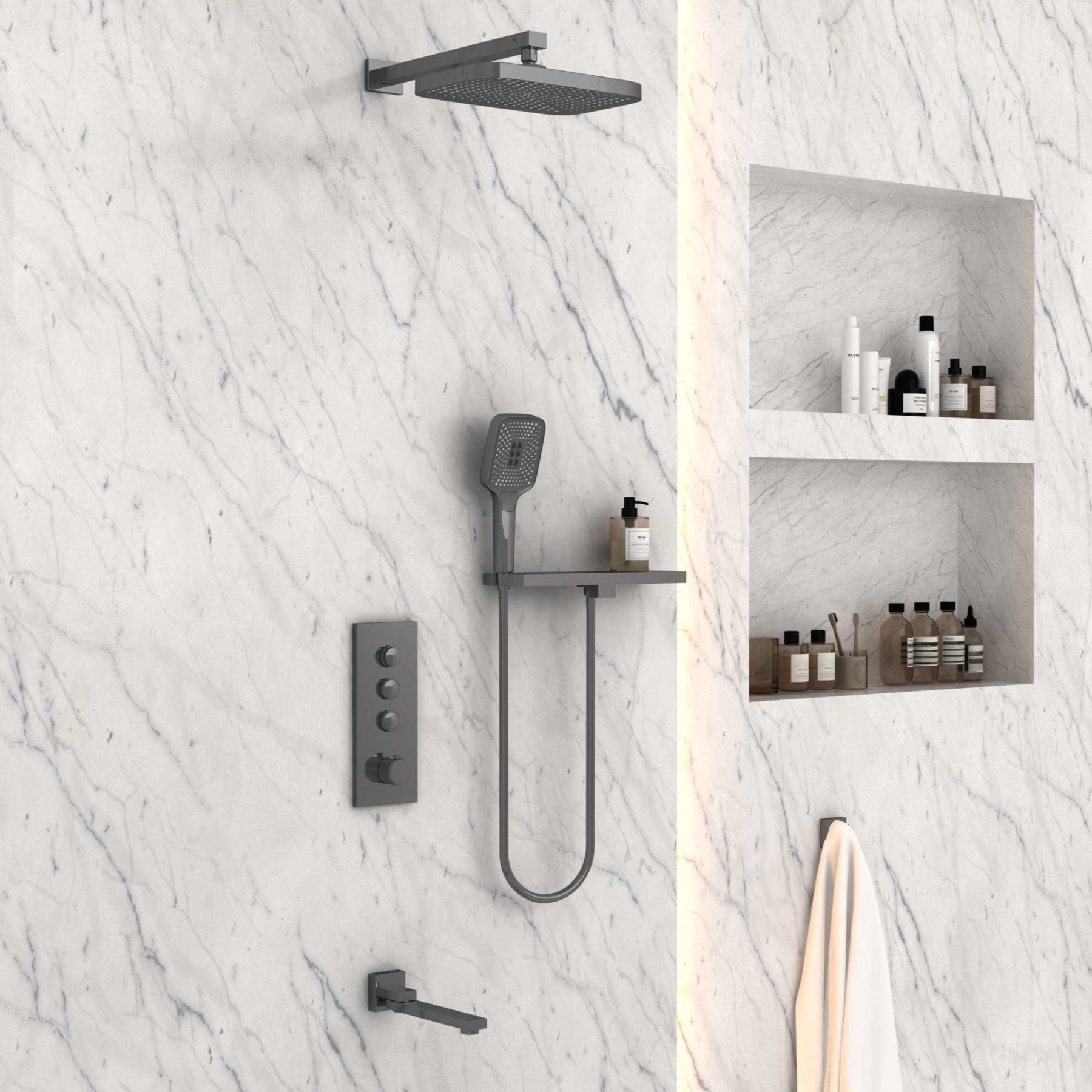 Душевой комплект Vincea VSFW-431T1RGM встраиваемый, термостатический, трехрежимный, вороненая сталь купить