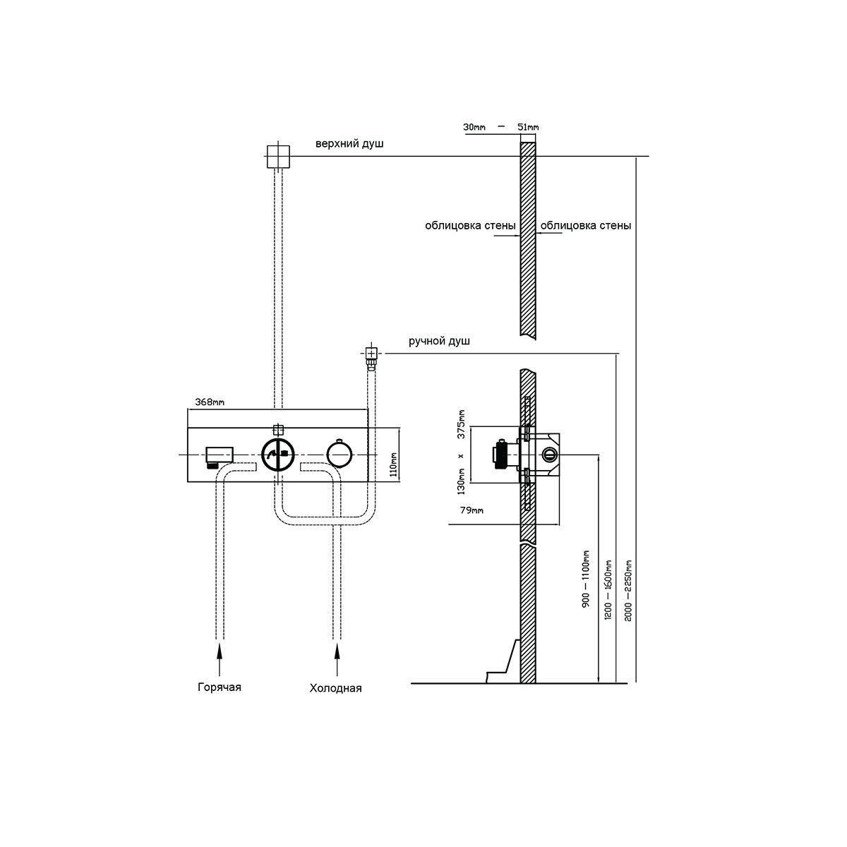 Размер верхнего душа, см:30