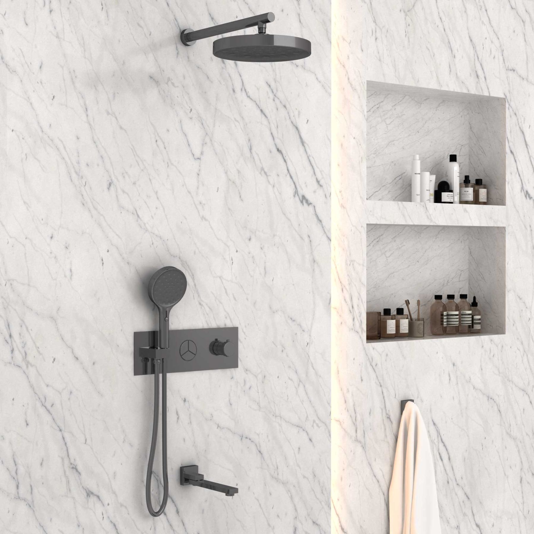 Душевой комплект Vincea VSFW-432TI2GM встраиваемый, трехрежимный, термостатический, вороненая сталь