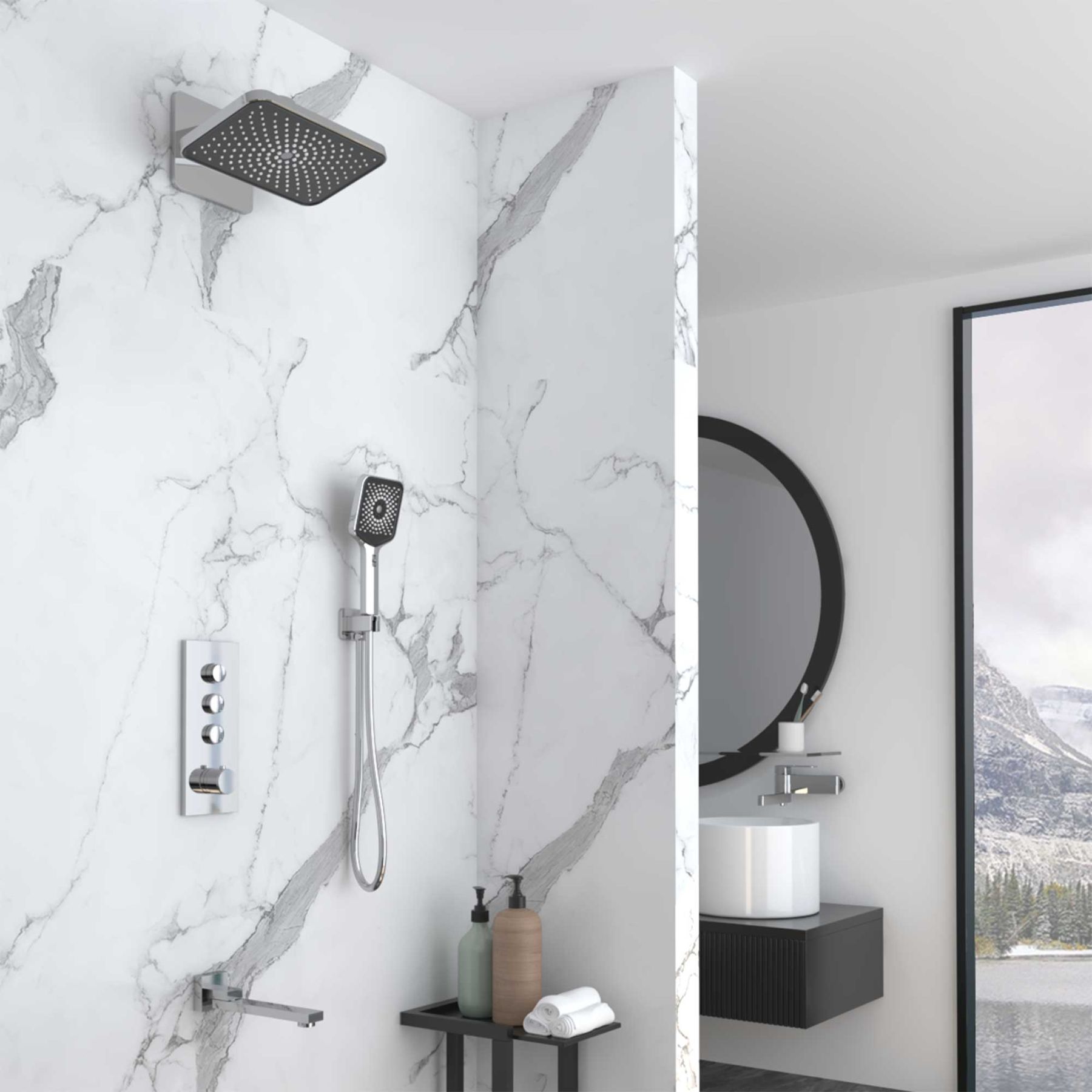 Душевой комплект Vincea VSFW-433TI4CH встраиваемый, термостатический, трехрежимный, хром