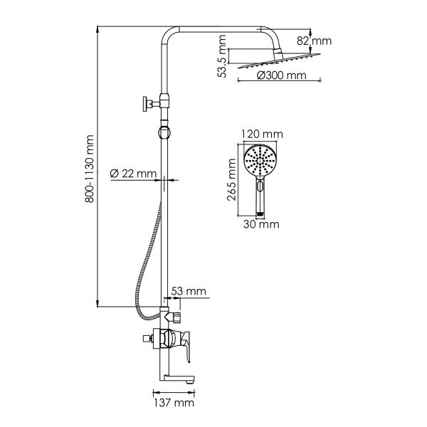 Стойка для душа, Ø 22 мм регулируемая по высоте