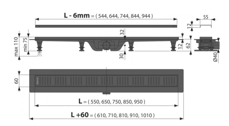 • Регулируемые монтажные ножки 0-35 мм, позволяют быстро и удобно установить желоб и выровнять его в горизонтальной плоскости
