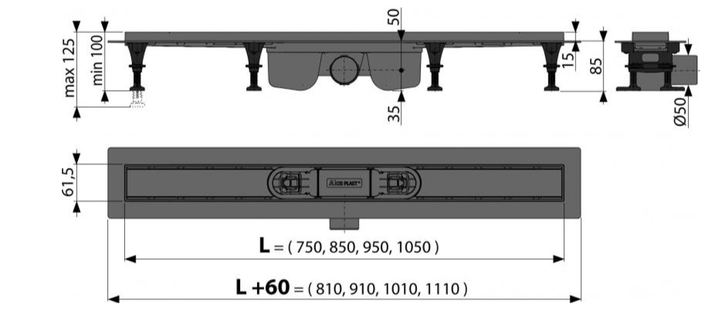 Душевой лоток AlcaPlast с порогами для перфорированной решетки или решетки под кладку плитки 75см серый APZ12-750 купить
