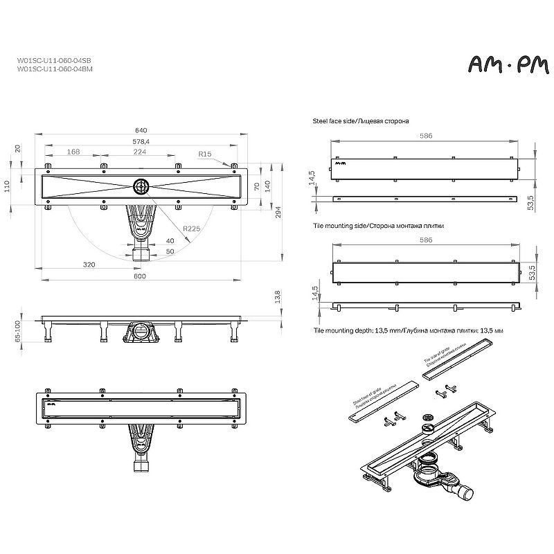 Душевой лоток AM.PM MasterFlow 60 W01SC-U11-060-04BM.Детально проработанная форма изделия, точные выверенные линии. Представляем инновационный лоток для душа Masterflow.Универсальная двухсторонняя решетка лотка может быть использована как самостоятельная декоративная вставка, либо как база для вклейки плитки.Лоток для душа имеет высокую пропускную способность 50 л/мин. Обладает комбинированным затвором: сухим магнитным и гидрозатвором. Проверенная технология гарантирует 100% защиту от проникновения запахов из канализации, высокую надежность и долговечность. Выдерживает даже самые большие механические нагрузки. Поворотный сифон на 360 градусов позволяет установить лоток наиболее удобным и комфортным образом.Продукт обладает низкой высотой монтажа и возможностью регулировки, что предполагает экономию бюджета при заливке пола. Нержавеющая сталь со специальным антикоррозийным защитным покрытием, нанесенная методом кислотной пассивации. Выход разработан на два диаметра: 40 и 50 мм, которые выбираются в процессе монтажа.Характеристики:Цвет решетки: черный матовый.