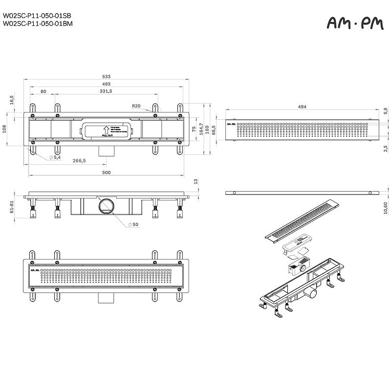 Душевой лоток AM.PM PrimeFlow 50 W02SC-P11-050-01BM.Представляем уникальный лоток для душа PrimeFlow с ультрамодной дизайнерской решеткой.Невероятно высокая скорость слива - 45 л/мин благодаря двухкамерному комбинированному затвору. Надежность и долговечность изделия. Легкое обслуживание трапа: простая разборка и чистка сифона.Продукт обладает низкой высотой монтажа и возможностью регулировки, что предполагает экономию бюджета при заливке пола. Лоток имеет инновационную конструкцию решетки с фильтром, что значительно увеличивает межсервисный интервал.Характеристики:Цвет решетки: черный матовый.