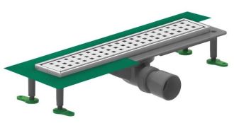 Душевой лоток с корпусом из полипропилена для применения в душевых. Доступны длины 330, 400, 500, 600, 700 и 800 мм.- перфорированная решетка из нержавеющей стали AISI 304 с квадратным узором;
