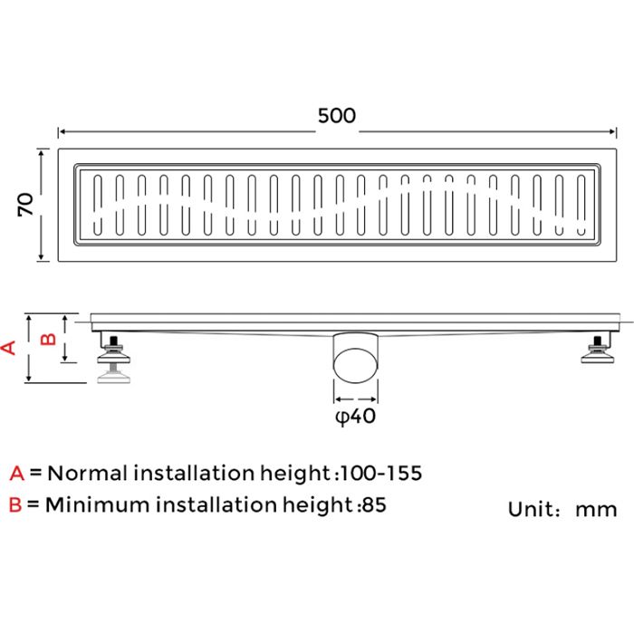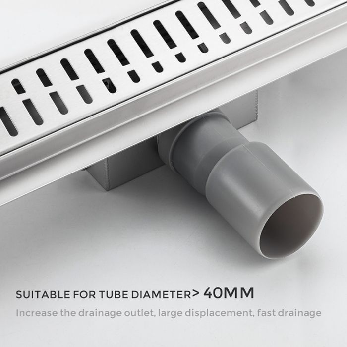 Трап для душа линейный Gappo G85007-3, длина 50 см, цвет сатин, изготовлен трап из нержавеющей стали. Минимальная монтажная высота 85 мм, боковой выпуск 40 мм, в комплекте переходник на 50 мм. Защита от запаха: комбинированный гидрозатвор, защита от проникновения запаха и жидкости из канализации.