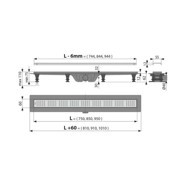 Душевой лоток с двусторонней решеткой из нержавеющей стали используется для отвода воды из душевой зоны с безбарьерным доступом. Решётку можно установить двумя способами: в первом случае сверху — полоса из цельной нержавеющей стали, во втором — закреплённая на решётке плитка или мозаика толщиной до 12 мм. Водоотводящий жёлоб выполнен из нержавеющей стали, прошедшей электрохимическую обработку. Комбинированный гидрозатвор обеспечивает надежную защиту от проникновения запаха. Высота монтажа до 81 мм. Регулируемые монтажные ножки позволяют быстро и удобно установить желоб и выровнять его по горизонтали.