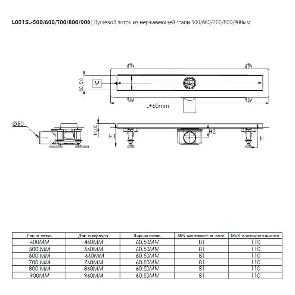 Душевой лоток Logan L001SL-500.Характеристики:Цвет решетки: нержавеющая сталь.
