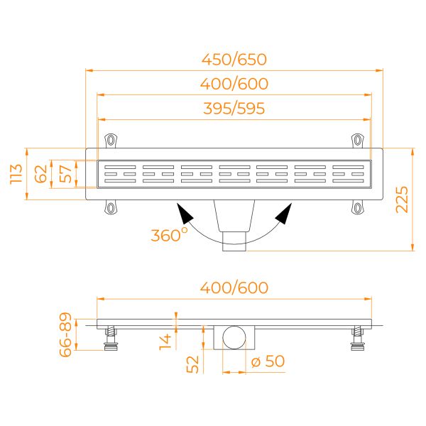 • Небольшая монтажная высота и регулируемые ножки: позволяют легко и быстро установить трап.