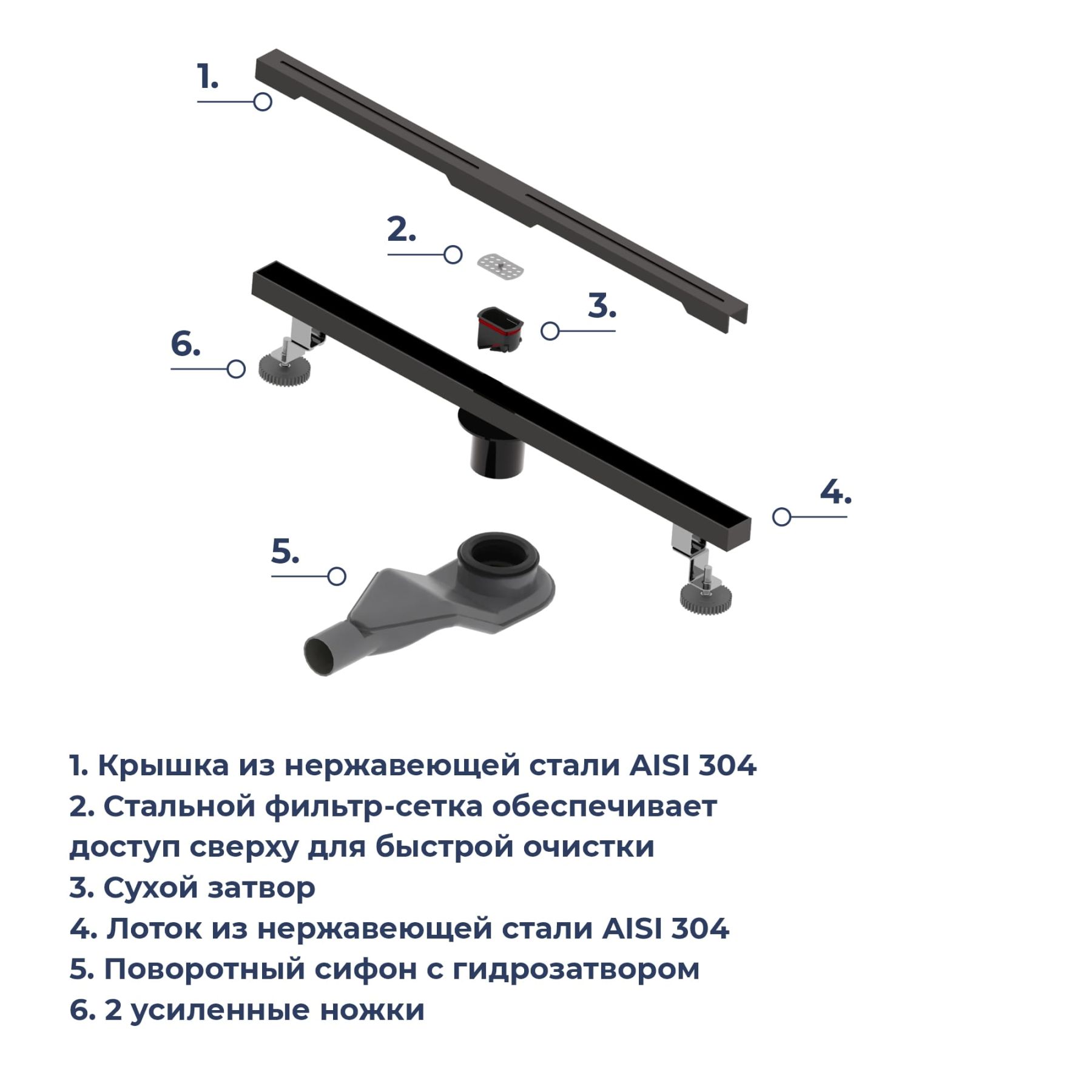 • Две усиленные опоры из нержавеющей стали с регулировкой высоты