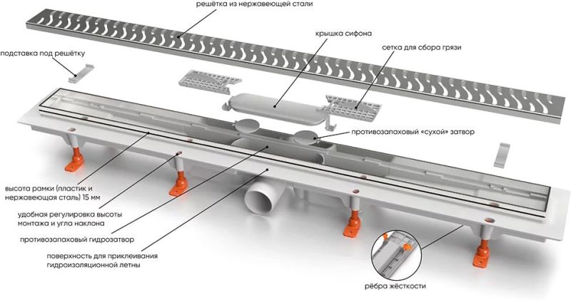Вид решетки: с щелью для воды/под плитку.