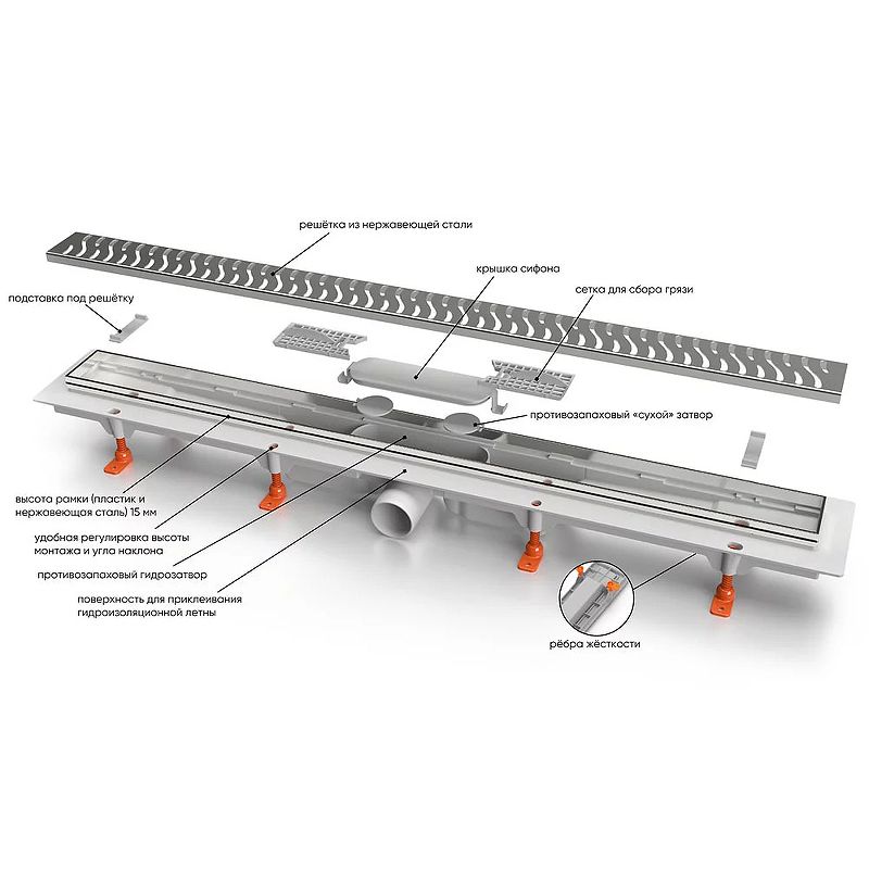 Материал слива: нержавеющая сталь.