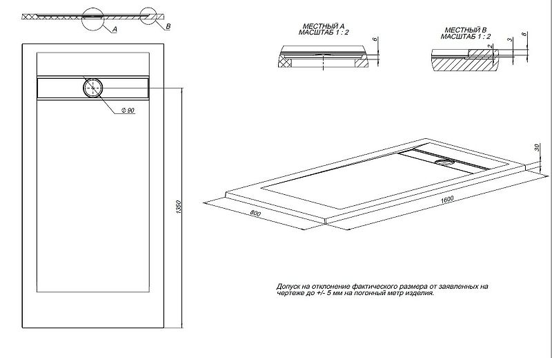 Душевой поддон из искусственного камня Allen Brau Infinity 160x80 8.21006-AM.