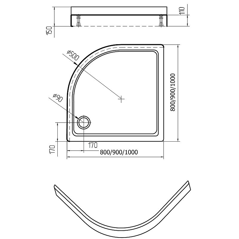 Душевой поддон Aquatek 100 x 100 х 15 см, акриловый, четверь круга, с ножками и с фронтальным экраном, DPA-0000002Основные характеристики:Размеры: 100*100 см