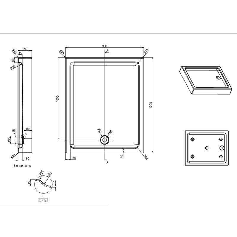 Душевой поддон Azario ONTARIO P1912 R/L