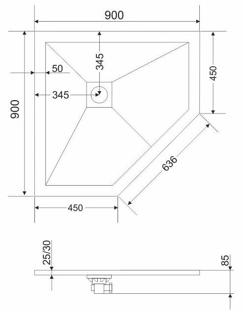 - Размеры поддона: пятиугольный 90 x 90 толщина 2,5 см
