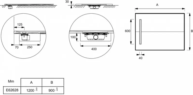 Отсутствие выступа и толщина поддона 30 мм для легкого доступа