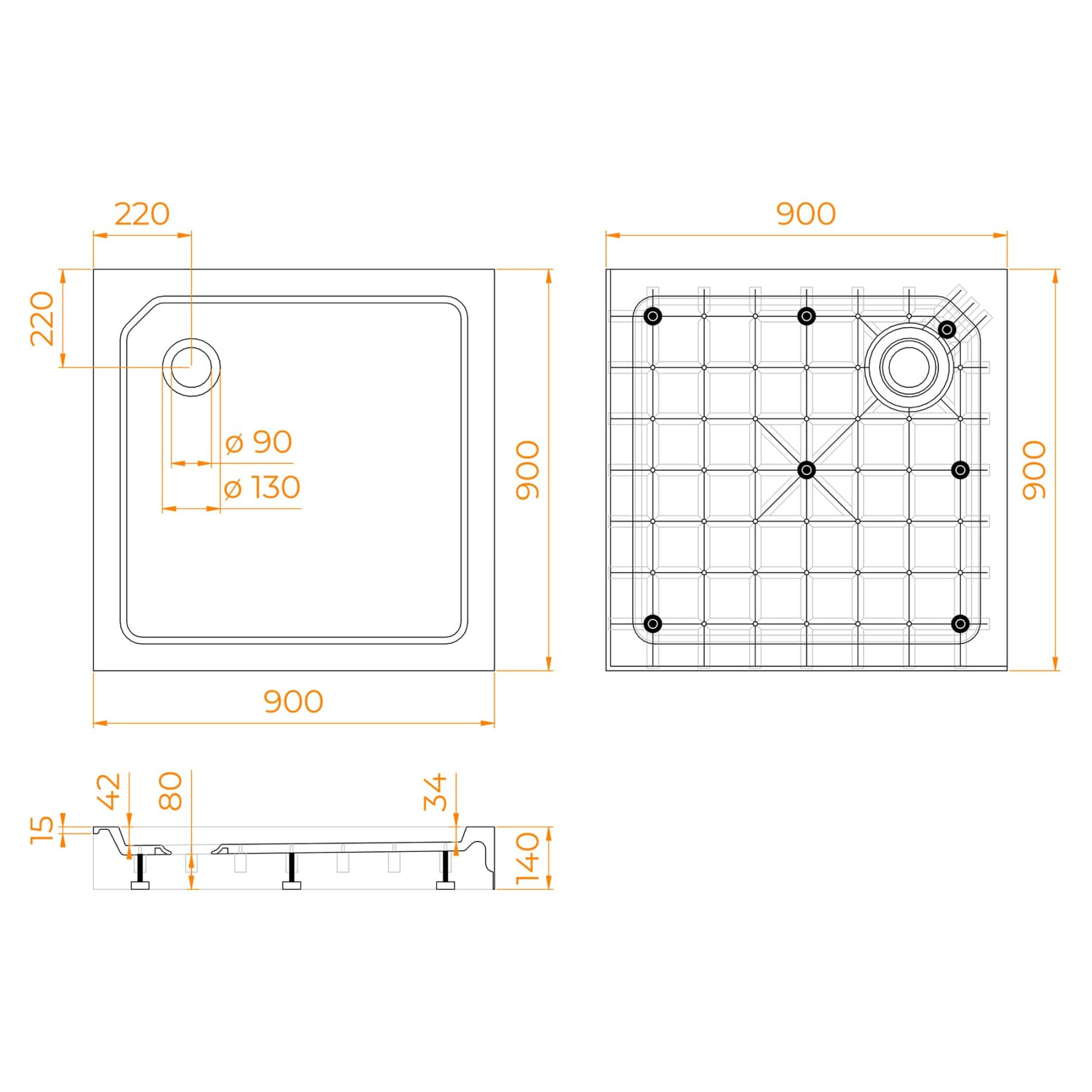 Душевой поддон RGW SMC-C-088 12350199-01 90x90 см белый