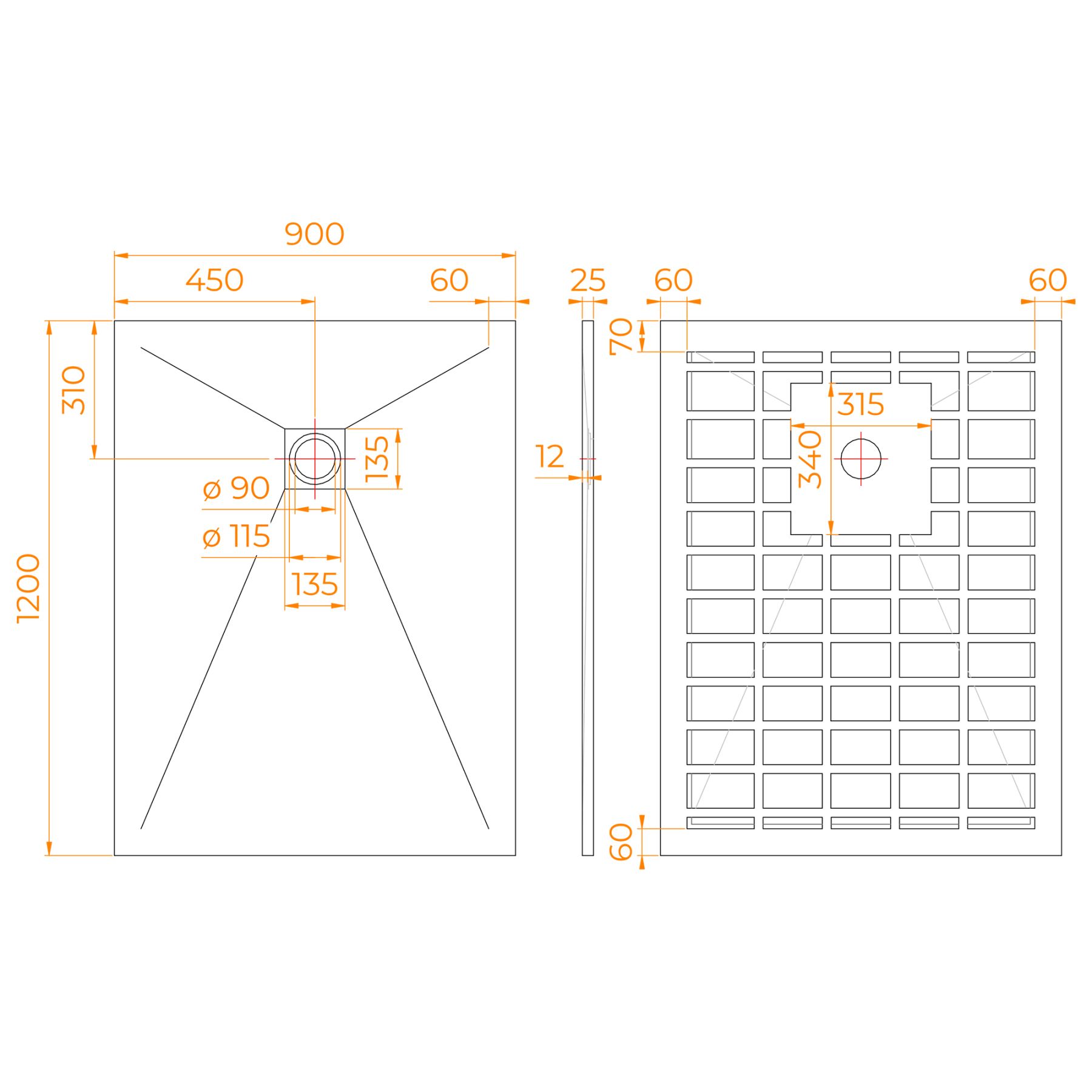 Примечание: сифон и сливная решетка приобретаются отдельно для обеспечения максимальной сохранности при транспортировке.