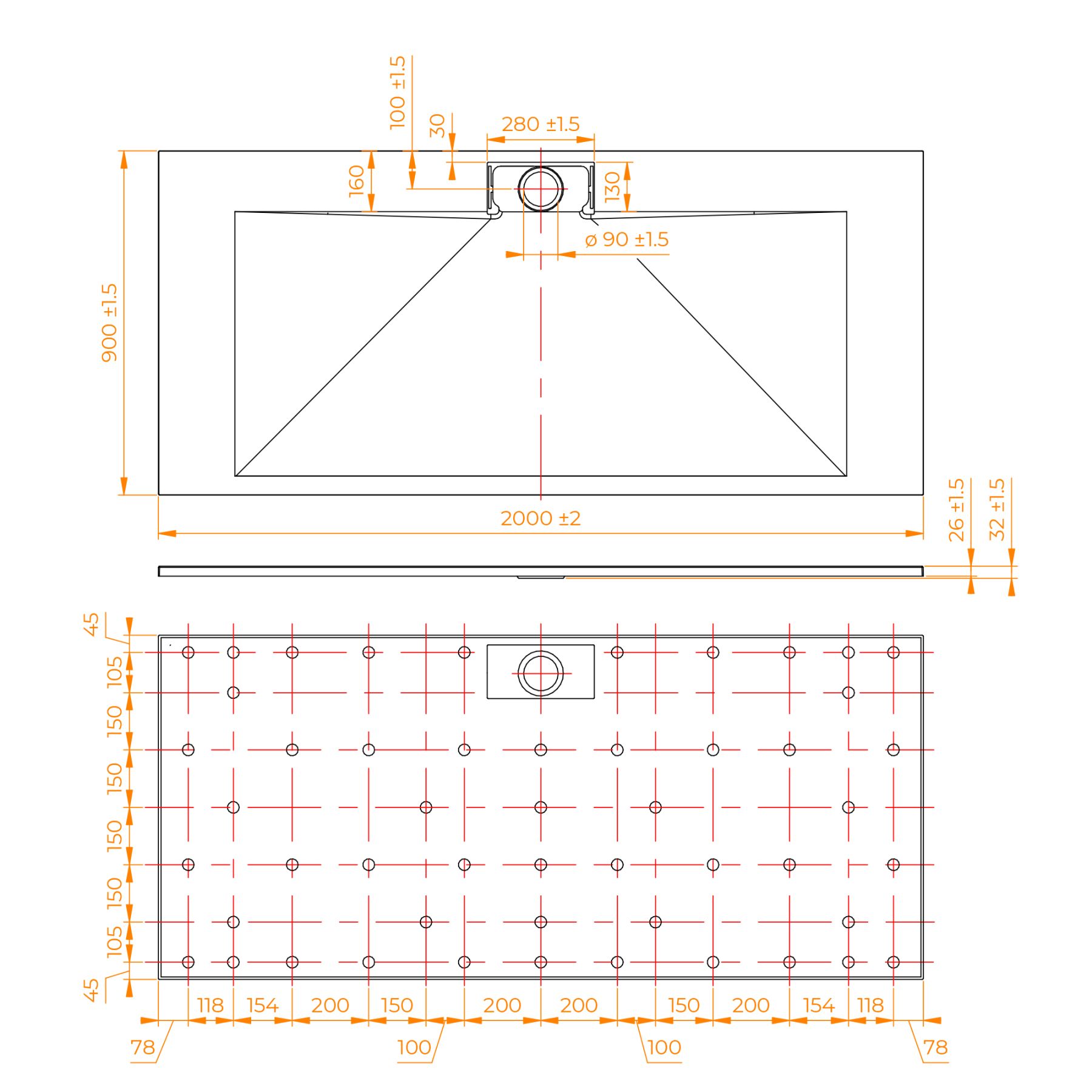 • Общая высота поддона: 26 мм.;