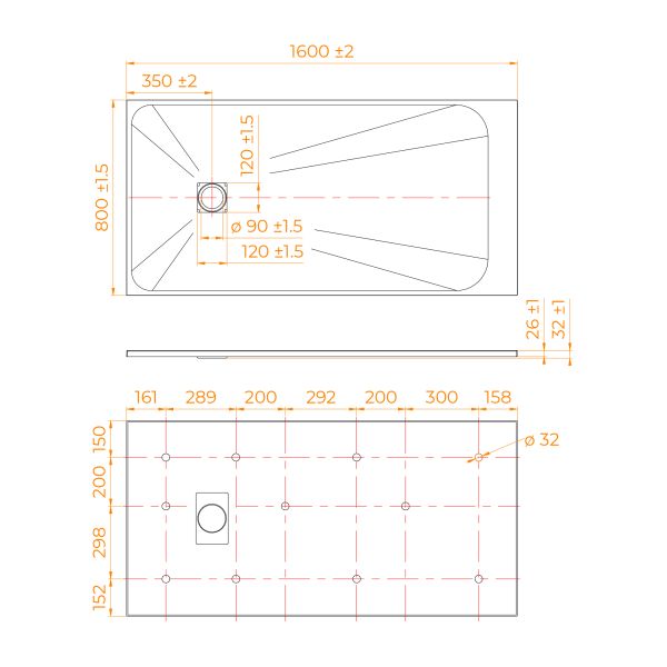 - Общая высота поддона: 26 мм.;