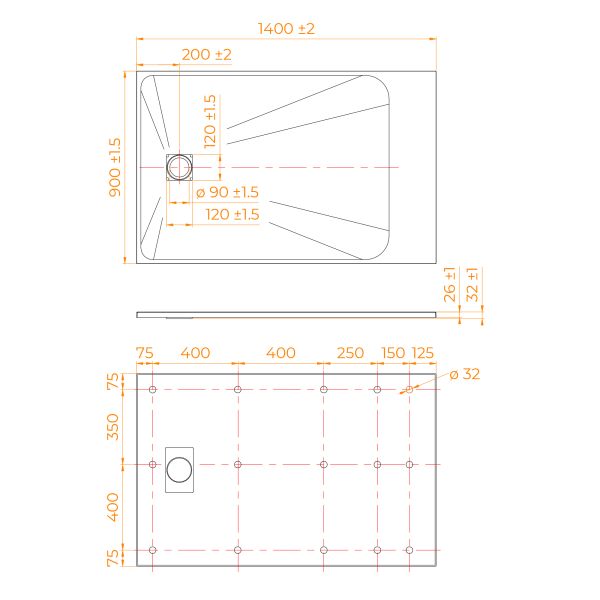 • Общая высота поддона: 26 мм.;