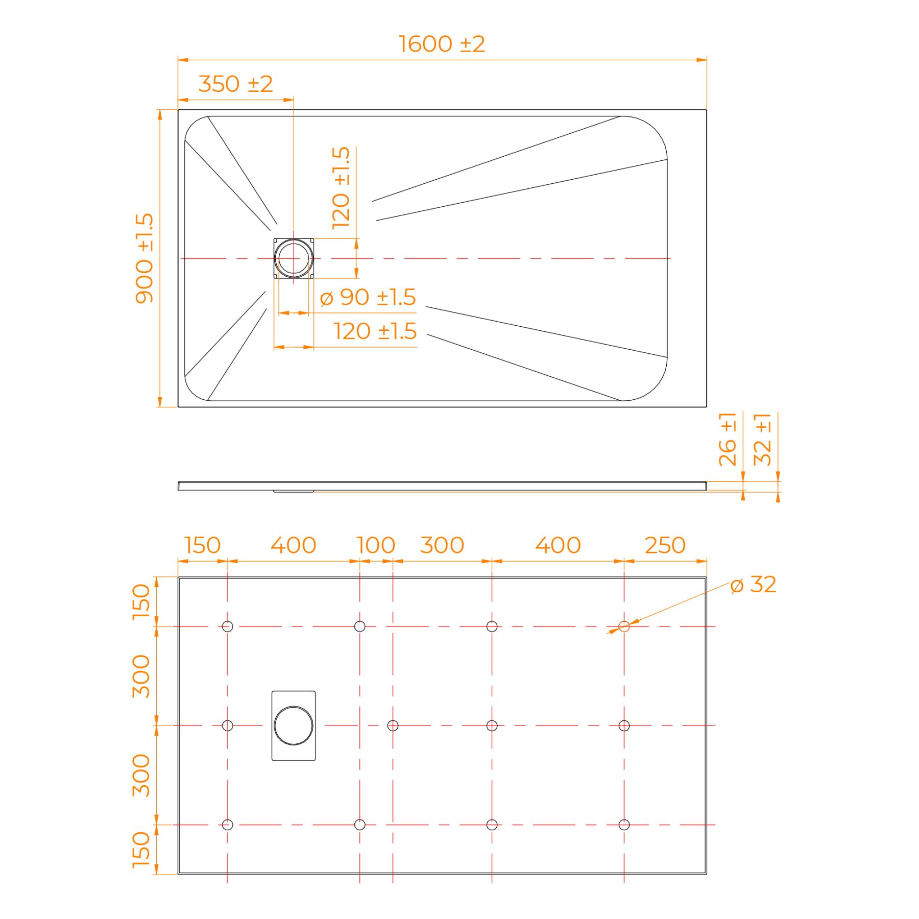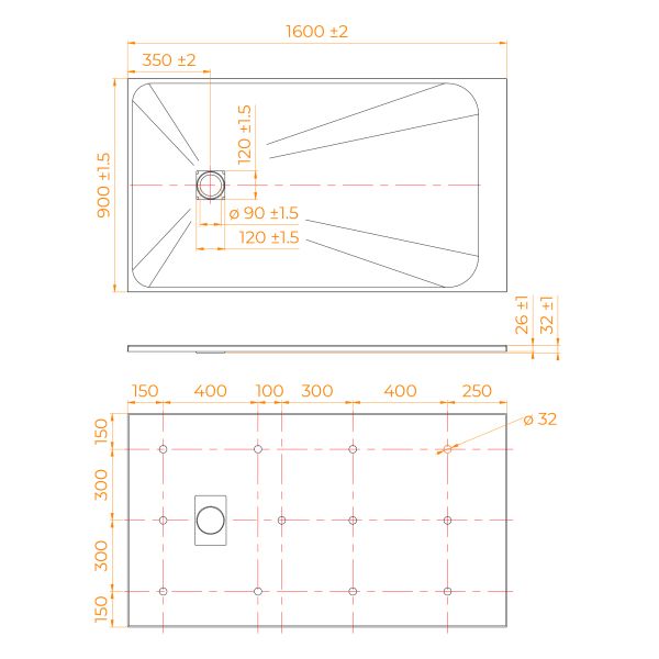 • Общая высота поддона: 26 мм.;