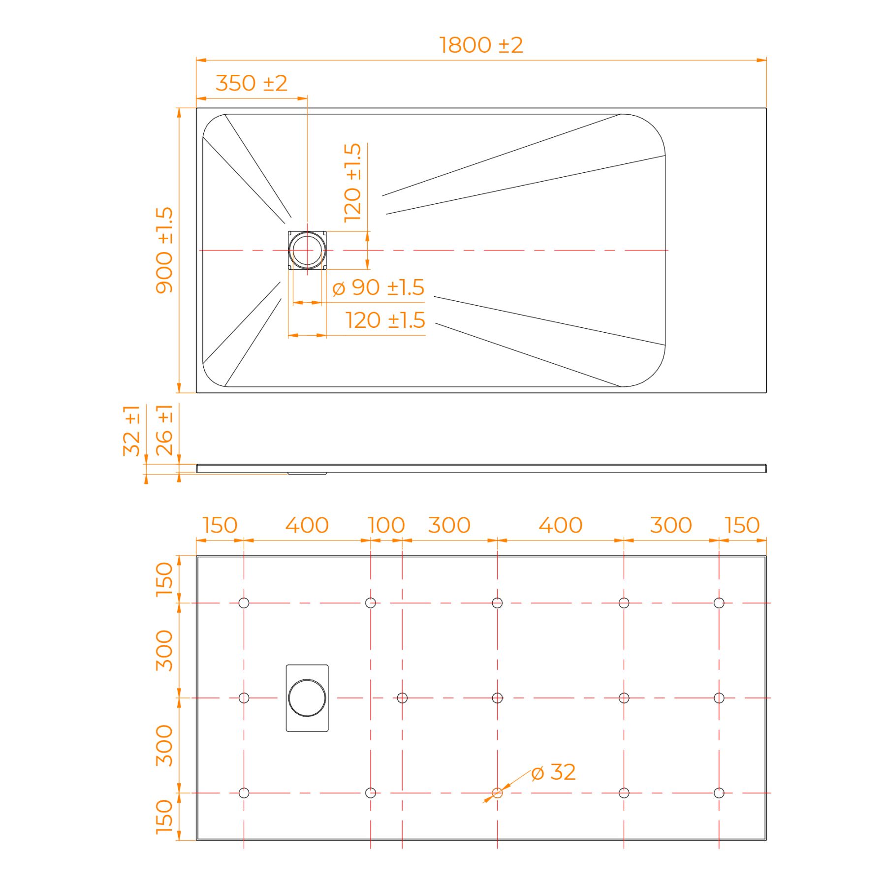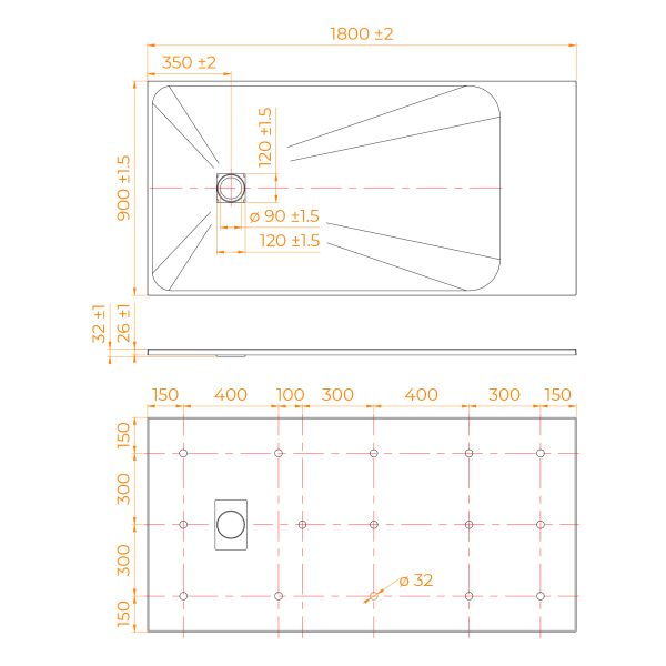 Материал исполнения SMC - стеклопластик или стеклокомпозит.Поддоны производятся на сложнейшем оборудовании под воздействием большого давления и высокой температуры.В результате получаются изделия по твердости поверхности не уступающие закалённому стеклу, а волокнистая структура материала и специальная конструкция поддонов позволяет выдерживать значительные механические нагрузки.Низкая теплопроводность материала, такая же как у дерева, позволяет поддерживать комфортную температуру поверхности поддона в процессе использования.