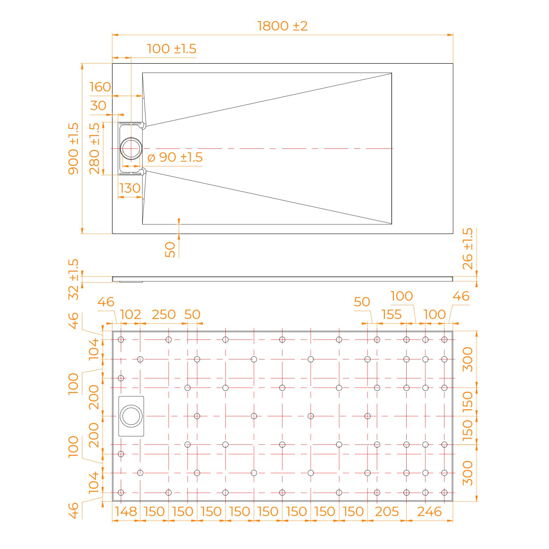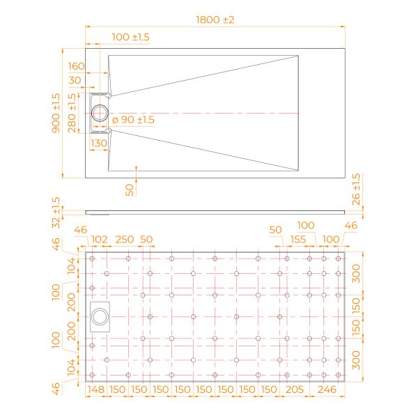 - Общая высота поддона: 26 мм.;