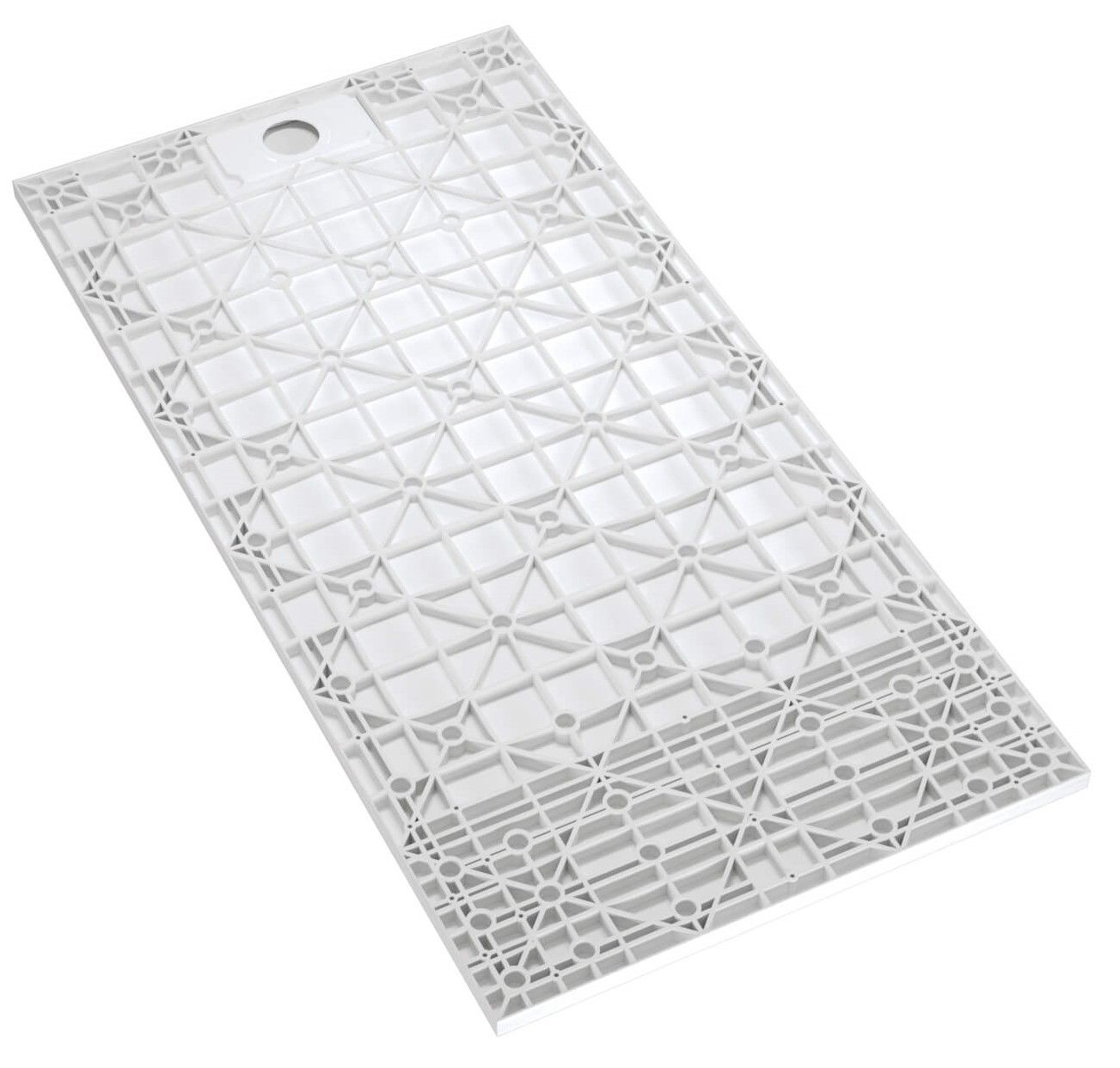 Материал исполнения SMC - стеклопластик или стеклокомпозит.Поддоны производятся на сложнейшем оборудовании под воздействием большого давления и высокой температуры.В результате получаются изделия по твердости поверхности не уступающие закалённому стеклу, а волокнистая структура материала и специальная конструкция поддонов позволяет выдерживать значительные механические нагрузки.Низкая теплопроводность материала, такая же как у дерева, позволяет поддерживать комфортную температуру поверхности поддона в процессе использования.