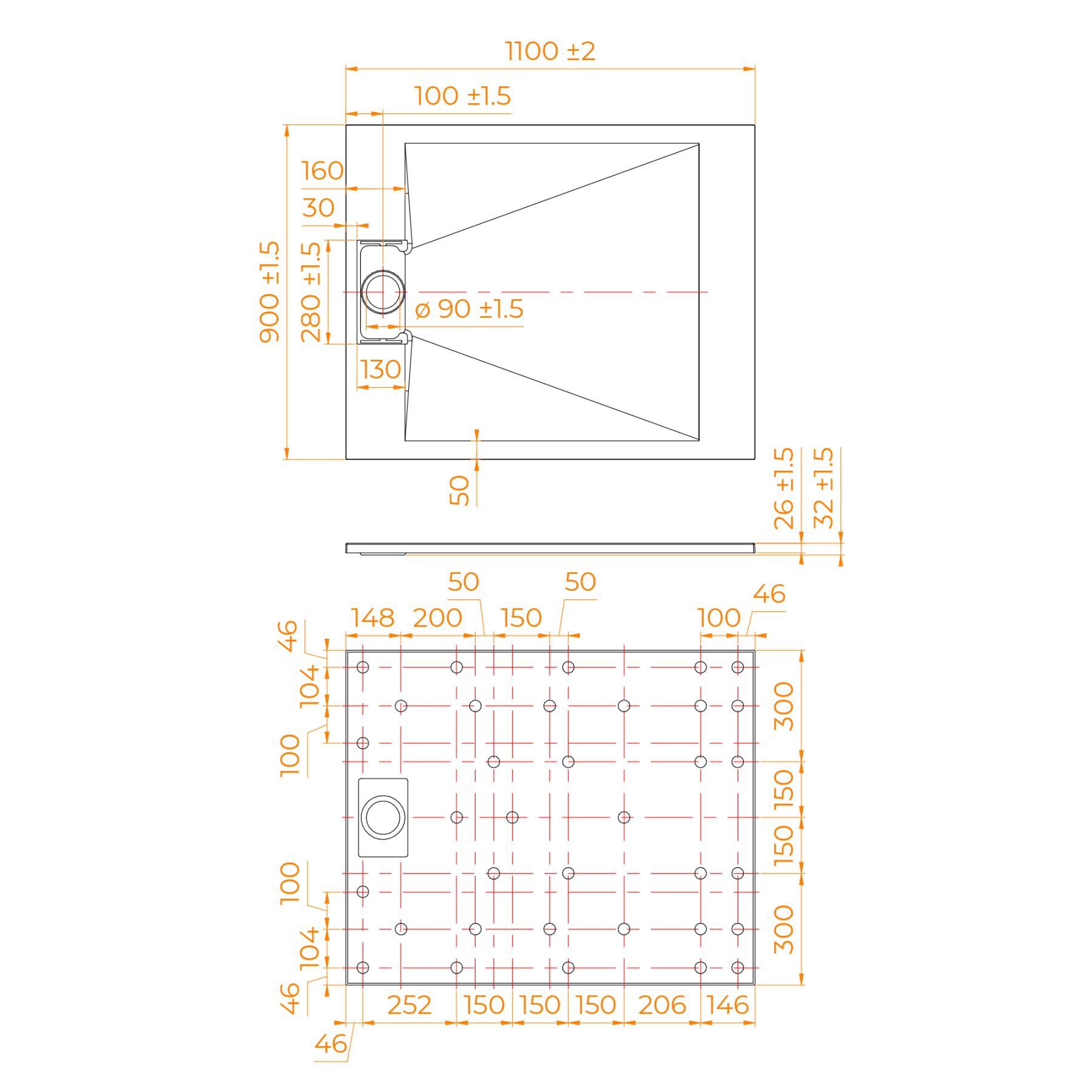 Душевой поддон RGW TUS-W 553702911-01 90x110см белый