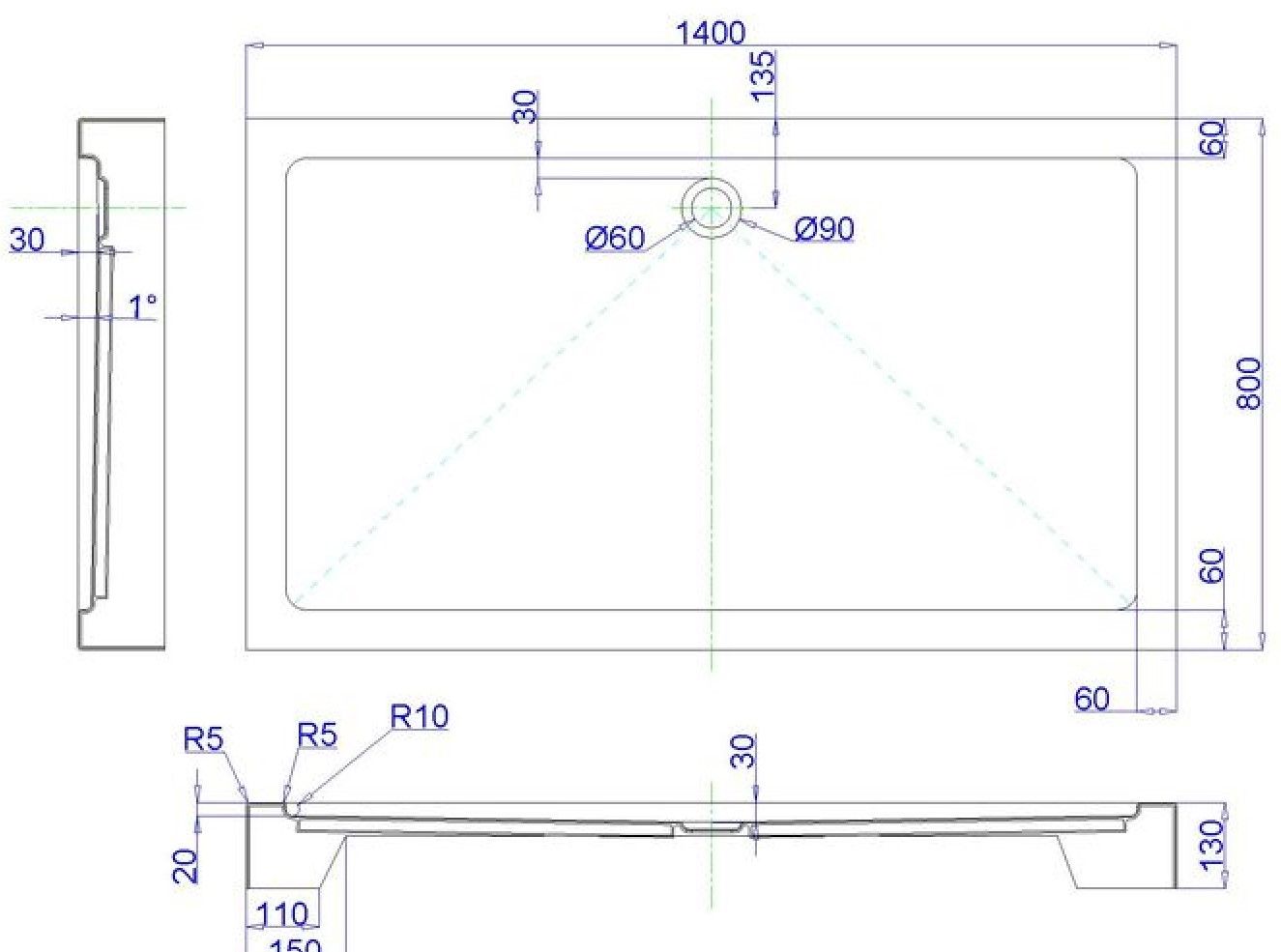 • Душевой поддон на ножках